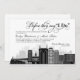 Os convites de janto de ensaio de casamento da paisagem elegante apresentam uma imagem de silhueta do horizonte da cidade de Nashville e o esquema clássico de preto e branco.
