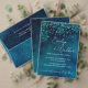 Reúna sua comitiva tesourada para um janto de ensaio antes do seu casamento. Este janto de ensaio foi inspirado por uma cerimônia romântica de inverno, realizada à noite, depois que o sol se pôs e as estrelas acendem o céu. Sonhando com um casamento mágico no inverno no meio das estrelas noturnas? Este belo marinho da meia-noite e o convite azul real têm características de flocos de neve prateados juntamente com os seus nomes e os detalhes do seu casamento em fontes serif. Na parte de trás do cartão estão seus nomes em uma caligrafia manuscrita. Personalize-o com seus próprios detalhes. Para mais personalização, clique no link "Personalizar" e use nossa ferramenta design para modificar este modelo.