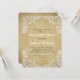Este convite de janto de ensaio de estilo rústico apresenta um padrão paisley branco desenhado à mão em todos os quatro cantos. O fundo é um ouro rústico.