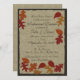 Folhas coloridas, vermelhas e laranja, sobre o aspecto impresso da burlap. Personalize para ser tão formal ou informal quanto desejar.
