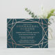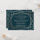 Um convite moderno e contemporâneo ao janto de ensaio de inverno, apresenta um padrão geométrico de rosa de ouro "folha falsa" sobre um fundo de turquesa escuro. Todos os seus detalhes estão soletrados num belo magnífico erro tipográfico moderno. Eu ofereço um serviço de personalização gratuito, se você tiver algum pedido especial, envie-me um e-mail para: margherita@bluebirdinvites.com Correspondência com a postagem dos EUA está disponível aqui: http://www.zazzle.com/collections/geometric_winter_wedding_set-119231006408651896 Clicando no botão personalizar você pode acessar as ferramentas de edição e mudar a cor de fundo, digitar e muito mais Nota ______________________________________________________________________________________________________________________________________________________________________________________________________________________________________ A cor de cobre metálica não é uma folha de papel real, é apenas um efeito de cor _______________________________________________________________________________________