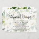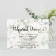 Este cartão de convite para janto de ensaio floral desvanecido da caligrafia meridional é perfeito para um ensaio de casamento moderno. A design apresenta uma tipografia branca e preta russa, mas elegante, com um fundo de flores brancas e lindíssimas.