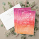 Celebre seu dia especial com este incrível menu Janto de Graduação de Cores d'Água Convite com um vibrante gradiente inspirado no pôr do sol, cor-de-rosa, laranja e amarelo. A elegante escrita branca acrescenta um toque especial, Perfeito para o exterior, verão, este convite é artístico e moderno. O texto personalizável permite personalizar os detalhes sem esforço para corresponder ao seu tema de Graduação.