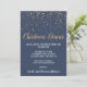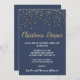 Este convite de janto de Natal de confete azul minimalista é perfeito para uma comemoração de Natal ou jantar de férias. A design apresenta um confete de ouro festivo com ouro elegante e caligrafia branca sobre fundo azul.