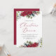 Convide convidados para o seu janto de férias em estilo festivo com os nossos convites para janto de Natal Elegante Watercolor Poinsettia. O elegante janto de Natal convida a apresentar buquês de flores de poinsettia vermelha escarlate, flores brancas, agulhas de pínus, bagas ocas e folhas verdes. As palavras "Janto de Natal" são exibidas em um roteiro de caligrafia vermelho escarlate com os detalhes de seu janto apresentados abaixo. O convite se reverte para um vermelho escarlate sólido. Projetado para coordenar com nossa coleção de feriados Elegante Watercolor Poinsettia.