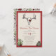 Este elegante convite de festas de Natal apresenta ilustrações temáticas sobre Feriado Ocidental desenhadas à mão a tinta preta, mostrando um crânio de renas adornada com rosas vermelhas e plantas de cacto. A parte de trás apresenta um belo padrão com estes mesmos elementos contra um fundo de creme elegante.