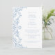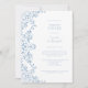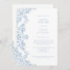 Defina a palco para um janto de recepção de casamento com este elegante convite de janto de ensaio de tema azul claro. Os tons de azul e branco são perfeitos para um chic costeiro, casamento vintage romântico de dinheiro ou um casamento de jardim floral. Personalize os detalhes e adicione a noiva e o monograma do noivo no verso. Projetado pelo Simple Desert Design Studio. Mande-nos uma cor personalizada que corresponda ao seu tema de casamento.