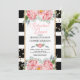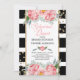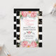 Convites de ensaio personalizados jantados com listras pretas e brancas e lindas flores cor-de-água cor-de-rosa - decor de peões.
