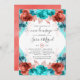 Turiquesa e coral rústicos rosas de aquarela e folhagem tropical convite para janto de casamento com tipografia tradicional desenhada para ser rápida e facilmente personalizada em espanhol.