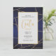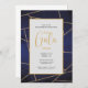 Este convite do Janto Gala corporativo moderno apresenta um elegante fundo azul marinho escuro acentuado com linhas geométricas de falso brilho dourado.