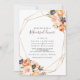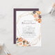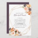 Este convite jantado de ensaio roxo de blush geométrico é perfeito para um ensaio de casamento simples. O design retrata ouro desenhado à mão, roxo, amarelo e pincelado belos rosas com folhas verdes, enfeitando um quadro geométrico dourado, inspirando a beleza colorida do outono.