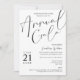 Crie convites elegantes para seu janto de caridade, gala de prêmio ou função de arrecadação de fundos com este Convite Anual para Evento de Gala. Este simples convite à empresa a preto e branco apresenta um layout mínimo simples com fontes de caligrafia de tendência e espaço para o seu logotipo e detalhes do evento.