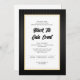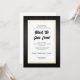 Este convite para o janto Black Tie Gala apresenta um tema na moda adornado com fundo preto e faixas verticais de cinza clara. Uma caixa branca com borda dourada contém texto personalizado para que você adicione os detalhes do evento. O design oferece um senso de classe e sofisticação, definindo o tom para um evento memorável.