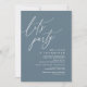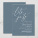 Marque o começo de sua eternidade com elegância usando nosso romântico tema azul empoeirado romântico, elopemento de casamento feliz para sempre, depois do brunch almoço jantar da festa convite, "Vamos Party". Perfeito para os casais estendendo sua alegre ocasião, este convite exude sofisticação com uma sugestão de brincadeira, definindo o palco para um evento memorável. Adorado com um tema design de roteiro moderno de eterno, ele adiciona um toque de encanto refinado às suas festividades, este convite promete capturar lindamente sua história de amor.