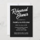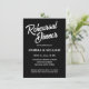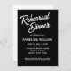 Simples estilo de janto de ensaio de casamento convites que apresentam letras brancas e estilizadas sobre um fundo preto sólido. Edite seus convites substituindo nomes, data/hora, local e informações de contato por seus próprios nomes. Selecione o tamanho do convite e o estilo do papel.