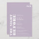 Um simples e preto branco no janto de ensaio de casamento de lavanda roxa pastel com a noite antes de ser escrito em caracteres negros de tamanho excessivo. Uma ideia perfeita de casamento de ensaio.