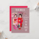 convites de festas adequados para um tema japonês feito em uma festa japonesa. De uma pintura original do artista Sacha Grossel, de uma Geisha japonesa vestida de carregando tradicional, um guarda-chuva e vestida com um quimono vermelho e rosa. Esta ilustração de estilo artístico asiático giro é colorida e a cor e o texto de fundo podem ser alterados de acordo com o seu gosto pessoal.