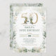Elegante convite para 50 anos, com tema botânico, com lindas cores aquáticas verdes e douradas