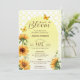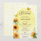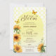 Celebre a chegada de um novo bebê com este convite brilhante e alegre de Bebê em Flor. O design apresenta girassóis vibrantes pintados à mão em aquarela e borboletas amarelas delicadas contra um padrão clássico de treliça e um arco amarelo suave. É a escolha perfeita para uma festa de jardim de verão com tema neutro em relação ao gênero ou um chá de bebê rústico com tema botânico.