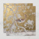 Se você ama ouro, prata e jardins você vai adorar este elegante design com um pavão em cores neutras em um espetacular fundo de folha de ouro. Essa elegante chinoiserie botânica com um set em um jardim de chá com folhagem de prata vai adicionar classe e elegância a qualquer ocasião. Volte no tempo e entre num jardim de chá oriental com este design elegante.