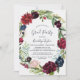 Este convite à festa de formatura da coroa da coroa do outono é perfeito para um evento elegante. O design floral apresenta flores cor-de-água, flores, cor-de-rosa, vermelha, marinho e borrifadas, brilhantes, e folhas verdes organizadas em uma ferida de queda viva. Personalize o verso do cartão com o nome do convidado de honra e o evento.
