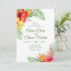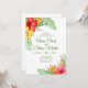 Um brilhante e alegre design botânico para o seu casamento tropical! Este convite apresenta flores suculentas em tons vibrantes de vermelho, amarelo e laranja entremeados com palmas verdes brilhantes, todas em um fundo branco nítido. A parte traseira da placa apresenta um pequeno buquê no centro. Você pode adicionar seus detalhes clicando no link personalizar. Este item é parte de uma bela suíte de casamento que pode ser totalmente personalizada.