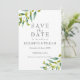Este elegante cartão Save the Date apresenta delicada folhagem verde em aquarela, enquadrando seus detalhes personalizados para anunciar sua data especial. Projetado por Thisisnotme©