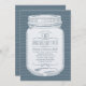 Convites de festa de jarra de Mason rústicos de 25º aniversário de casamento em Azul Empoeirado. Apresentam uma ilustração criativa de jarra de Mason em um fundo listrado moderno em azul empoeirado. Se desejar, você pode facilmente alterar a cor do fundo. Uma bela tipografia de texto - você pode editar e alterar a cor se desejar. Ótimo para qualquer aniversário - 10º, 20º, 30º, 50º, etc. Criado por http://superdazzle.com