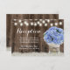 Luzes de Corda com Jarros de Mason de Hortênsias Azuis Rústicas para Recepção de Casamento.