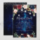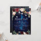 Jarras de Mason para Jantar de Rehearsal Rústico com Luzes. Com céu azul meia-noite, flores em aquarela boho burgundy e blush e rosas navy. Acentuado com convite de casamento em letra manuscrita falsa dourada (com filtro prateado) elegante e moderno. Cor de fundo DIY.