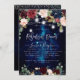 Jarras de Pedra para Jantar de Rehearsal com Luzes. Com céu azul meia-noite, flores em aquarela boho burgundy e blush e rosas navais. Acentuado com convite de casamento em letra manuscrita falsa dourada (com filtro prateado) elegante e moderno. Cor de fundo DIY.