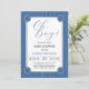 Um jean azul com costuras e botões, um convite para chás. Este adorável convite de chá de bebê chá de fraldas moderno e caprichoso traz um toque de alegria de denim para sua celebração! O design apresenta um fundo de tecido azul-jean realista, completo com autênticas costuras brancas e gravuras que imitam a coisa real. Um quadro branco nítido, também revestido de costuras delicadas, mostra os detalhes do evento. Os botões Denim destacam os quatro cantos da imagem, adicionando um toque divertido e exclusivo. A frase "Oh Boy" adiciona um toque de doçura a esta design única.