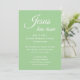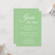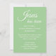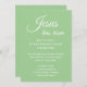 Personalize este convite para convidar seus amigos, familiares e a comunidade para um serviço de Páscoa na igreja. Todo o texto simples e moderno pode ser editado para o seu evento. "Jesus ressuscitou" escrito em elegante letra cursiva branca adicionará inspiração de fé ao seu convite de Páscoa. Adicione a data, hora e detalhes da celebração de Páscoa. Perfeito para um serviço comunitário de Páscoa, um serviço de alvorada na igreja, uma celebração de Páscoa, celebração do dia da Ressurreição, um brunch de Páscoa na igreja, refeição ou serviço. Adicione o endereço da igreja ou evento, número de telefone, site e informações de contato conforme necessário. A cor verde pastel sólida foi inspirada na minha fotografia de flores da primavera. Veja minha coleção de Páscoa Cristã inspiradora para pratos, guardanapos, copos e mais correspondentes.