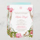 Convite Jewish Floral Blue Pink Naming Star de David
