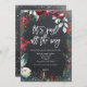 Um convite para festas de festas reluzentes com a tipografia do "vamos jingle all way" e flores vermelhas e brancas com uma dica de verde e bagas. Itens correspondentes disponíveis no compro.
