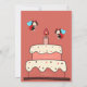 Joaninha com bolo de aniversário em fundo bege