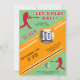 Convite de Aniversário Temático de Jogador de Beisebol do Modern Baseball. Celebre com estilo com este elegante design de convite de aniversário temático de beisebol! Com uma paleta de cores divertida e alegre em vermelho, verde e laranja, letras em negrito e gráficos realistas de beisebol, este design esportivo é perfeito para qualquer fã de beisebol. O cartão apresenta silhuetas dinâmicas de jogadores, uma bola de beisebol 3D e detalhes em listras. Seja para uma festa infantil ou para um adulto amante de beisebol, este design premium e personalizável é um sucesso para qualquer celebração de aniversário!