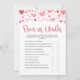 Dê uma olhada no seu chá de fraldas Dia de os namorados com um toque de entusiasmo e uma competição amigável com nossos Corações Vermelhos Cor-de-Rosa para Cima ou Sob Jogo! Os convidados participarão de um jogo de adivinhação moderado, predizendo se certos fatos relacionados ao bebê ultrapassaram ou estão abaixo de um número específico. Envolva o jogo com charmoso decoro, rosa e vermelho, para uma atmosfera festiva e amorosa. Prepare-se para risos, alegria e um borrão de magia Dia de os namorados enquanto os hóspedes desfrutam desta divertida e interativa atividade de chá de fraldas! 👶 💕 🎉