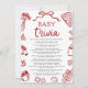 RESPOSTAS: 1. A. Audição 2. D. 300 3. A. Kneecaps 4. C. 8-12 5. D. 500 6. C. 4-8 semanas 7. B. 8-14 em 8. D. 16 9. C. 176 10. B. Rosa ................................................................................................................................................................................................................ Os Papais noeis Vermelhos Gênero Papais noeis Neutros Bebê Roupas Papais noeis de Natal Chá de fraldas Jogo Bebê Trivia é uma adição festiva e divertida ao seu chá de fraldas de férias! Apresentando um design vermelho brilhante com flocos de neve delicados, verde de eucalipto e adoráveis roupas de bebê inspiradas em Papais noeis, este jogo convida os convidados a testar seu conhecimento com perguntas sobre trivialidades de bebês. É uma atividade envolvente que adiciona alegria no feriado, juntando amigos e família para uma celebração alegre e memorável!