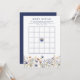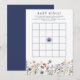Dê vida à sua festa de baby shower com nosso cartão de jogo de bingo Blue Wildflower Boho Baby Shower. Este cartão de jogo interativo apresenta uma encantadora borda floral de flores silvestres azuis e brancas, complementando perfeitamente sua celebração com tema boho. O cartão oferece uma atividade divertida e envolvente para os convidados, incentivando-os a preencher os quadrados em branco com presentes que acham que a futura mamãe possa receber. O primeiro a completar uma linha vence, adicionando um toque delicioso e competitivo ao seu evento. Esses cartões de bingo não são apenas uma ótima maneira de manter os convidados entretidos, mas também se integram lindamente à estética da sua festa de baby shower.