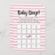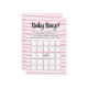 Jogo de bingo rosa e branco para chá de bebê menina. Listras horizontais brancas desenhadas à mão.