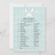 Um coelho branco acima do título do jogo com o bebê azul-aqua, e o fundo do diamante argyle. Modelos criaram por você. Este é um jogo de chá de fraldas Baby Candy.