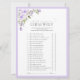 Você está procurando o jogo de chá de panela perfeito que trará muitos risos e diversão? Não olhe mais! O Elegante Chá de panela Floral da Lavanda Lilac ''noiva ou adivinha do noivo quem!'' Está aqui para fazer sua festa planejar uma brisa. Este jogo apresenta bonito florais de cor d'água rosa, tema de cor de lavanda lilás, caligrafia escrita à mão e tipografia sorif elegante. É perfeito para chás de panela e festas de noivado! Prepare-se para muitas risadas - garantido! Que este belo jogo faça parte de sua celebração especial para que você possa fazer memórias que durarão uma vida inteira. Veja aqui toda a suíte: https://www.zazzle.com/collections/elegant_lilac_lavender_floral_bridal_shower-119730120254921497 Entre em contato com o designer para obter produtos correspondentes. Copyright Anastasia Surridge for Elegant Invites. Todos os direitos reservados.