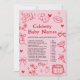 Adicione diversão e amor ao seu chá de bebê com este convite para o jogo de nomes de bebês de celebridades no Dia dos Namorados desenhado à mão! Com detalhes encantadores ilustrados à mão com corações e uma vibe alegre de Dia dos Namorados, este convite de jogo é perfeito para chás de bebê no Dia dos Namorados ou celebrações com tema de amor.