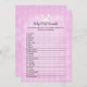 Um coelho branco acima do título do jogo, com um fundo de diamante roxo. Modelos criaram por você. Este é um jogo de chá de fraldas do Baby Word Scramble.