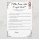 Um jogo de Chá de casamento ou Bachelor Party para ver quem conhece melhor o casal! Este jogo é especificamente para dois grupos! Um jogo fácil e divertido para convidados e para os Grooms. Basta que os Grooms preencham suas respostas, e vejam quais convidados podem obter as respostas mais corretas.