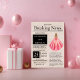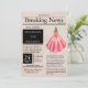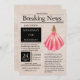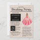 Lindo jornal em estilo antigo, "Notícias de Última Hora", edição especial com modelos personalizáveis com uma menina de vestido formal. Seu lindo vestido em aquarela é de cor rosa salmão com detalhes de brilho falso.