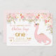 Convite Jovem Floral de Dinossauro Rosa e Dourado