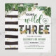 Prepare-se para uma celebração inesquecível com este convite de aniversário safari "Young, Wild and Three" (Jovem, Selvagem e Três). Com adoráveis animais da selva pintados à aguarela e folhagens exuberantes, é a maneira perfeita de convidar os convidados para a aventura do terceiro aniversário do seu filho. Este design moderno e neutro em termos de gênero é facilmente personalizável, permitindo que você adicione os detalhes específicos da sua festa para um visual profissional e sofisticado. Torne o marco do seu pequeno explorador memorável com esta escolha de papelaria de alta qualidade e aventuras.