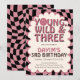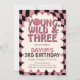 Convite de Aniversário de 3 Anos Young Wild and Three | Convite de Aniversário de 3 Anos para Meninas com Tema Retrô Fofo